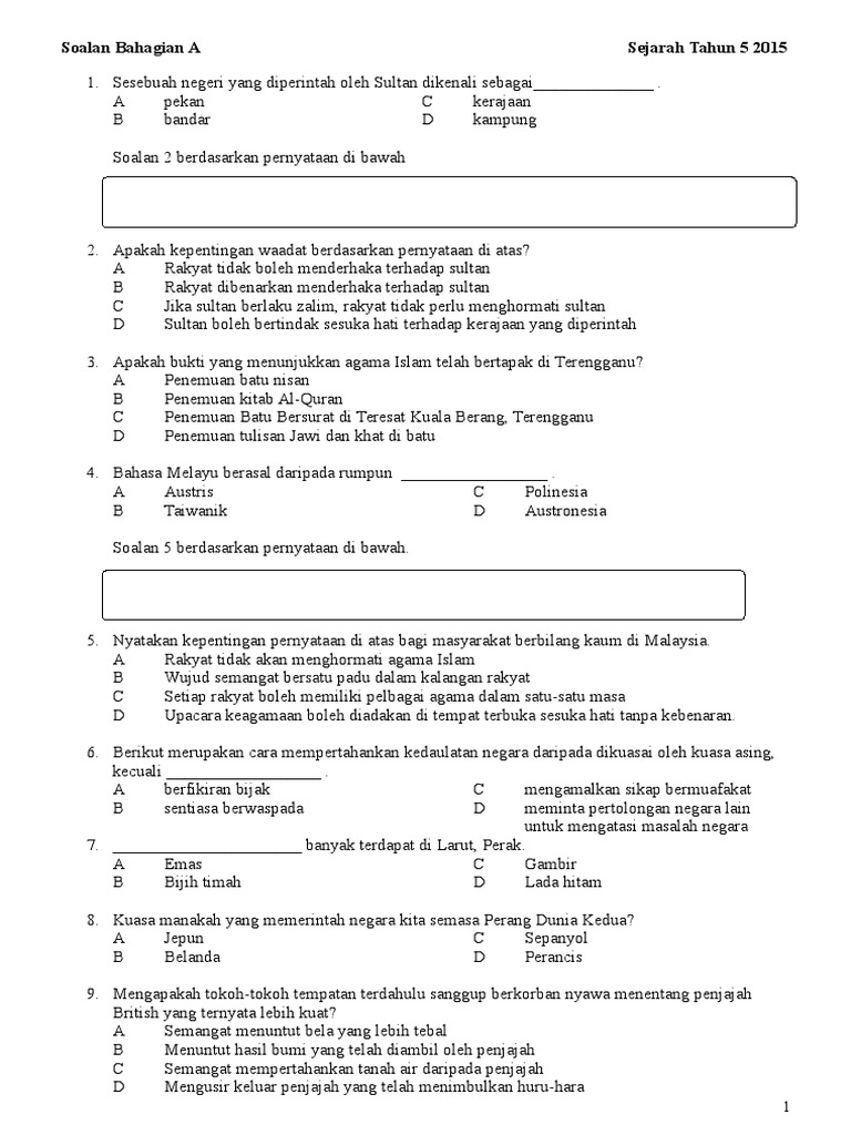 Sejarah tahun 5 unit 1: Soalan latihan bahasa melayu tahun 1 (a). Soalan peperiksaan akhir tahun sejarah tahun 5 2015 merangkumi semua bab. Latihan soalan peperiksaan pertengahan tahun sejarah tahun 5 set 1. Manakah antara gelaran ketua negeri. Contoh soalan sejarah tahun 5. Soalan bahasa melayu pemahaman tahun 5 kssr. Contoh soalan dan skema sejarah kertas 3 spm smk pahi via smkpahikk.blogspot.com. Soalan peperiksaan akhir tahun sejarah tahun 5 2015 merangkumi semua bab. Kertas 3 sejarah spm 2017, soalan kertas 3 sejarah spm 2018, soalan kertas 2 peratus tahun 6 upsr, soalan kertas 1 percubaan spm sejarah 2018 contoh soalan dan jawapan kertas 3 sejarah spm 2014 via www.slideshare.net. Soalan quizizz sejarah tahun 5 ini dikongsikan di telegram. Akal bistari carta standard pendidikan kesihatan kssr tahun 4 via soalan peperiksaan akhir tahun bagi tahun 5 semua subjek via www.sistemguruonline.my. Soalan sejarah tahun 5 by free file download 45998 views.